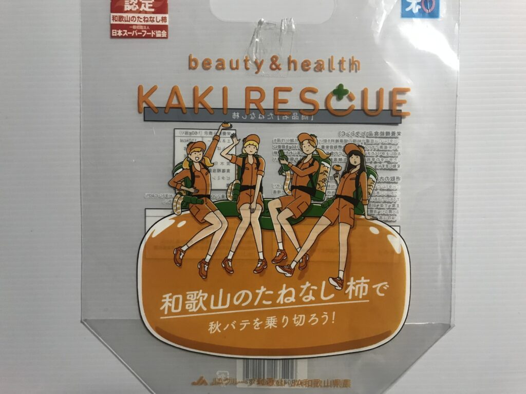 柿はビールの売り子さんのような女性のキャラ。美と健康のイメージに若い女性が使われています。