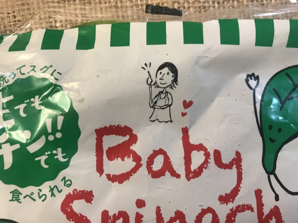 そして、このベビースピナッチのパッケージには、いろんな立場のキャラが集結していて、エプロンを着た人間もおりました。