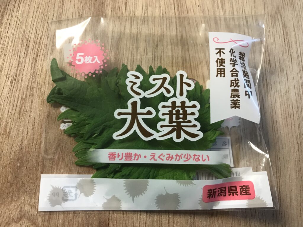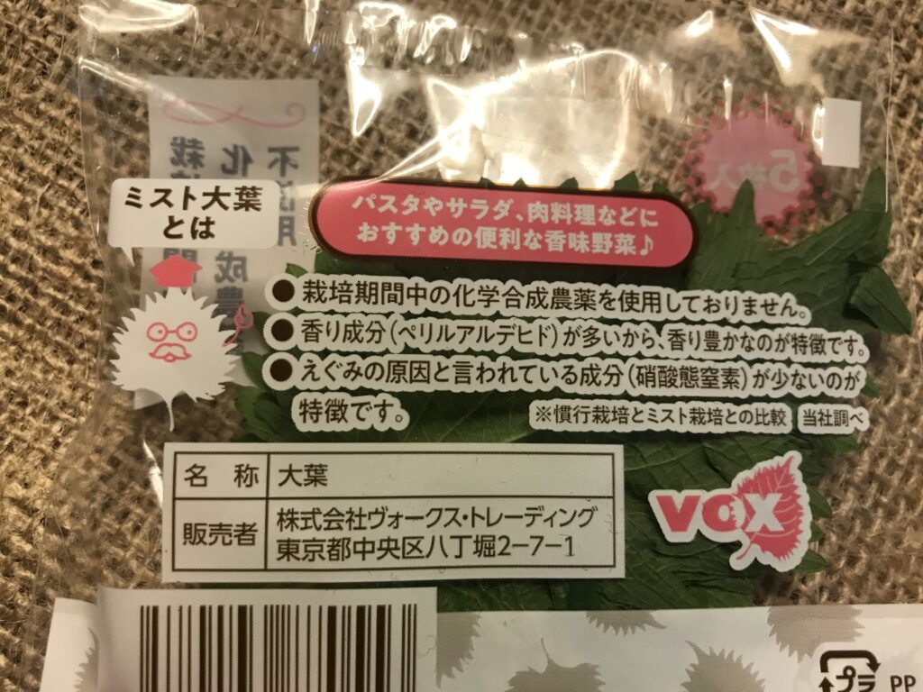 一見こってるな〜!という感じの大葉のパッケージ。なんと、こちら裏面パターンでした。