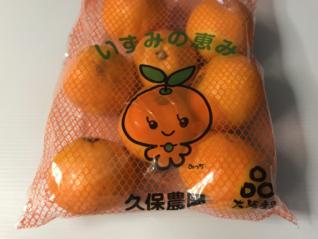 久保農園の印刷があるので農園キャラかと思いきや、こちらは大阪和泉市の「和泉みかん」のキャラで、和泉市果樹振興会所属のもの。なので市のキャラ、みんなのキャラです。